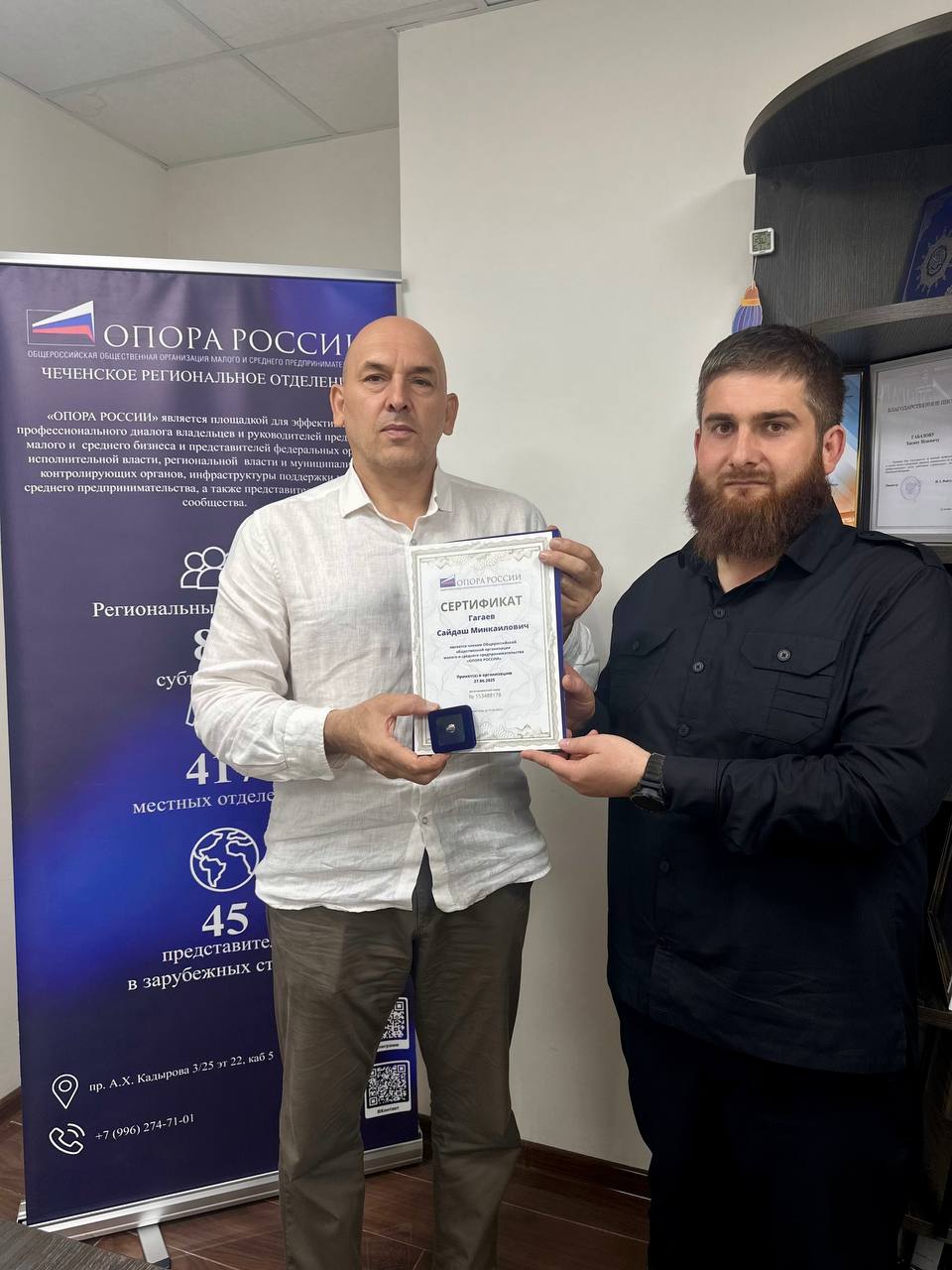 В офисе Чеченского регионального отделения «ОПОРЫ РОССИИ» состоялась рабочая встреча Исполнительного директора ЧРО «ОПОРЫ РОССИИ» Расула Цамаева с бизнес-тренером Центра «Мой бизнес», опытным бизнес-юристом и резидентом ЧРО «ОПОРЫ РОССИИ» Сайдашем Гагаевым.